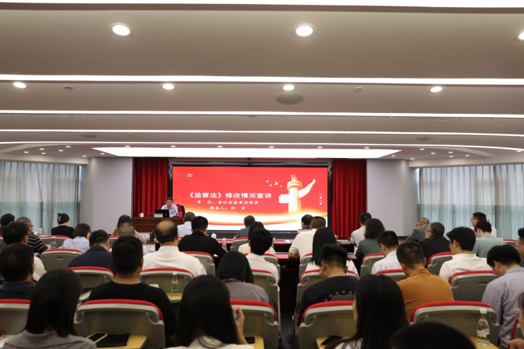 劉宏同志從《監(jiān)察法》修改的背景與意義、《監(jiān)察法》修改遵循的原則、《監(jiān)察法》修改內(nèi)容概述和《監(jiān)察法》修改的具體內(nèi)容等4個(gè)方面作了輔導(dǎo)。