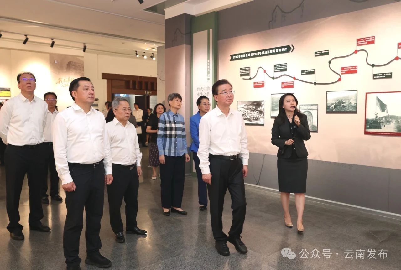 王寧等領(lǐng)導(dǎo)同志仔細(xì)參觀展覽,詳細(xì)詢問檔案文獻(xiàn)背后的抗戰(zhàn)故事。王寧強(qiáng)調(diào),要深刻學(xué)習(xí)領(lǐng)悟習(xí)近平總書記關(guān)于中國人民抗日戰(zhàn)爭和世界反法西斯戰(zhàn)爭的重要論述精神;深刻感悟在艱苦卓絕的抗日戰(zhàn)爭中,中國共產(chǎn)黨高舉抗日民族統(tǒng)一戰(zhàn)線的旗幟,全體中華兒女為國家生存而戰(zhàn)、為民族復(fù)興而戰(zhàn)、為人類正義而戰(zhàn)的雄壯史詩;深刻認(rèn)識(shí)邊疆各族人民同仇敵愾、誓死筑路,為中國人民抗日戰(zhàn)爭、世界反法西斯戰(zhàn)爭勝利作出的重大貢獻(xiàn)。要大力宣傳弘揚(yáng)偉大愛國主義精神,精心組織好系列紀(jì)念活動(dòng),講好抗戰(zhàn)故事,把偉大抗戰(zhàn)精神一代代傳下去。要用好用活紅色檔案資源,挖掘好滇緬公路、西南聯(lián)大等云南抗戰(zhàn)歷史資源,推進(jìn)紅色檔案資源展示進(jìn)校園、進(jìn)機(jī)關(guān)、進(jìn)企業(yè)、進(jìn)社區(qū)。要認(rèn)真組織好觀展工作,賡續(xù)紅色血脈,汲取奮進(jìn)力量,堅(jiān)定理想信念,激勵(lì)各族干部群眾團(tuán)結(jié)奮進(jìn)新時(shí)代,開創(chuàng)云南發(fā)展新局面。