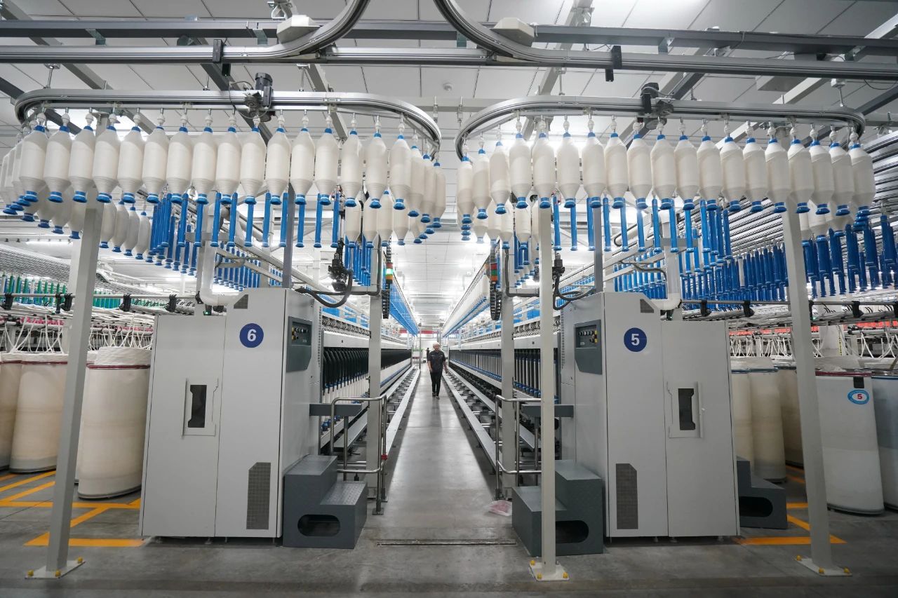 圖為2025年4月5日,位于江蘇泰州市姜堰區(qū)的一家紡織企業(yè)的智慧化紡紗工廠生產(chǎn)場(chǎng)景。新華社記者 季春鵬/攝