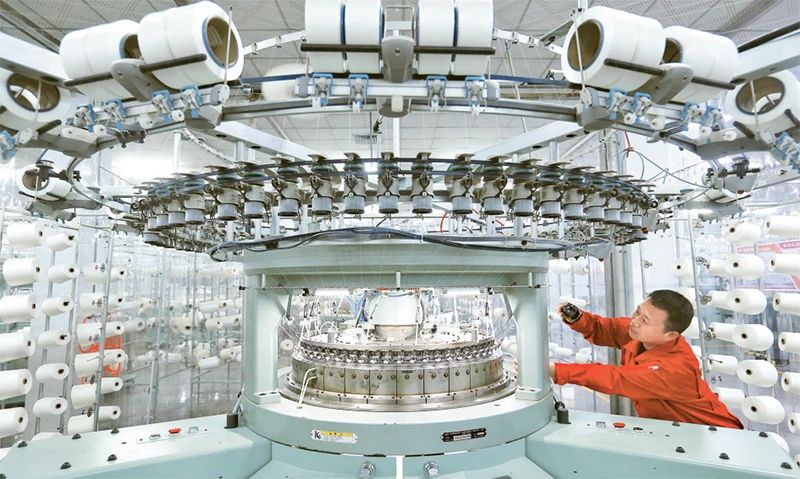 近年來,我國持續(xù)引導(dǎo)紡織企業(yè)加大新技術(shù)、新裝備、新工藝的研發(fā)和投入,加快信息化和工業(yè)化融合升級(jí)改造。圖為2025年5月19日,山東省青島市即墨區(qū)一家紡織企業(yè)的工人在生產(chǎn)出口海外市場的服裝面料。 新華社發(fā) 梁孝鵬/攝